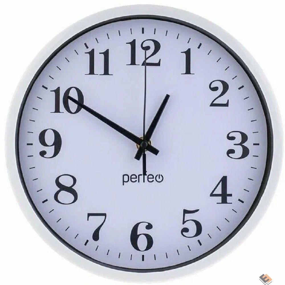 Perfeo Настенные часы "PF-WC-002", круглые д. 25 см, белый корпус / белый циферблат