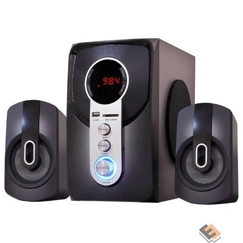 Ginzzu GM-405 2.1 с Bluetooth, выходная мощность 20Вт + 2х10Вт, аудиоплеер USB-flash, SD-card, FM-радио, пульт ДУ - 21 кнопка, стерео вход (2R