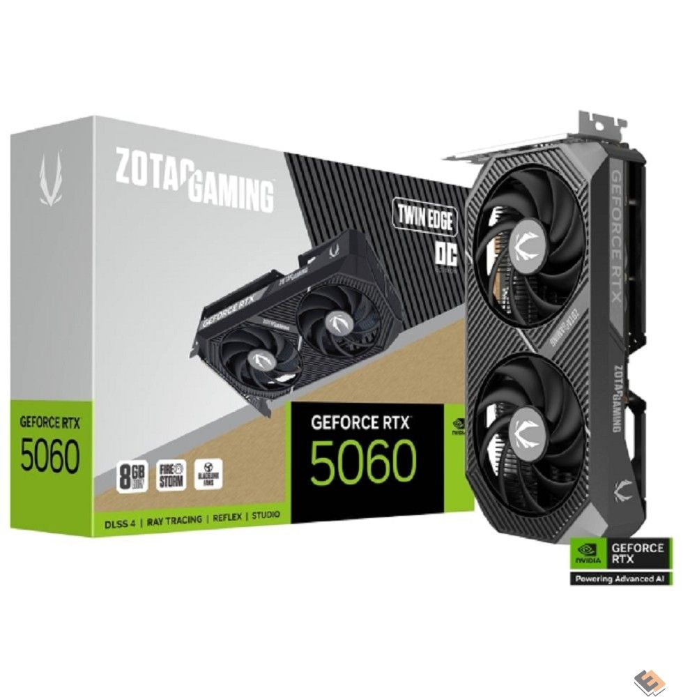 Видеокарта ZOTAC GAMING GeForce RTX 5060 TWIN EDGE 8Gb GDDR7 128 bit 2280/2527 MHz 3*DP/HDMI 2*FAN RTL (ZT-B50600E-10M)