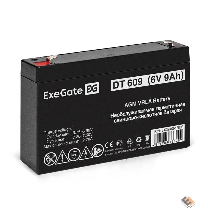 Exegate EX294051RUS Аккумуляторная батарея ExeGate DT 609 (6V 9Ah, клеммы F1)